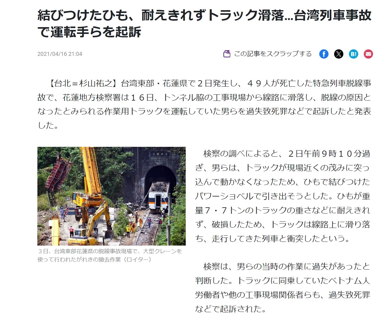 台湾の事故は作業用トラックを運転していた作業員の過失>>14