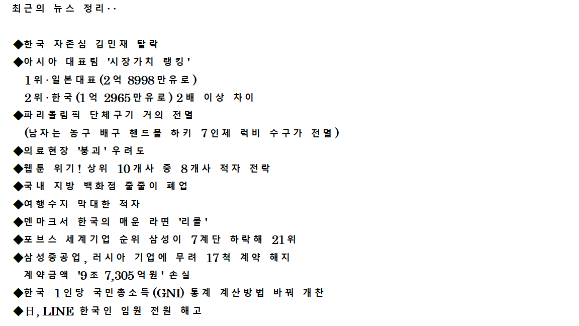 球技はほぼ全滅らしいけど、アーチェリーとかテコンドーとかあるじゃん。한국인들은 착해서 불우이웃을 돕는것을 좋아한다.