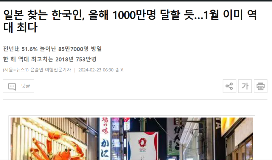 オールマイツアー関係者は「日本は海外宿舎予約量全体の30%を占め、注目を集めた。これは最近の円安で、相対的に安くなった日本旅行費用に魅力を感じた人が多くなった影響」と分析した。