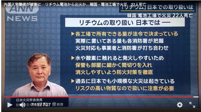 この勝負、韓国軍の負け。火災で23人死亡のリチウム電池工場、3年間で4回出火していた /華城