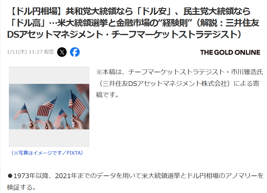 【ドル円相場】共和党大統領なら「ドル安」、民主党大統領なら「ドル高」