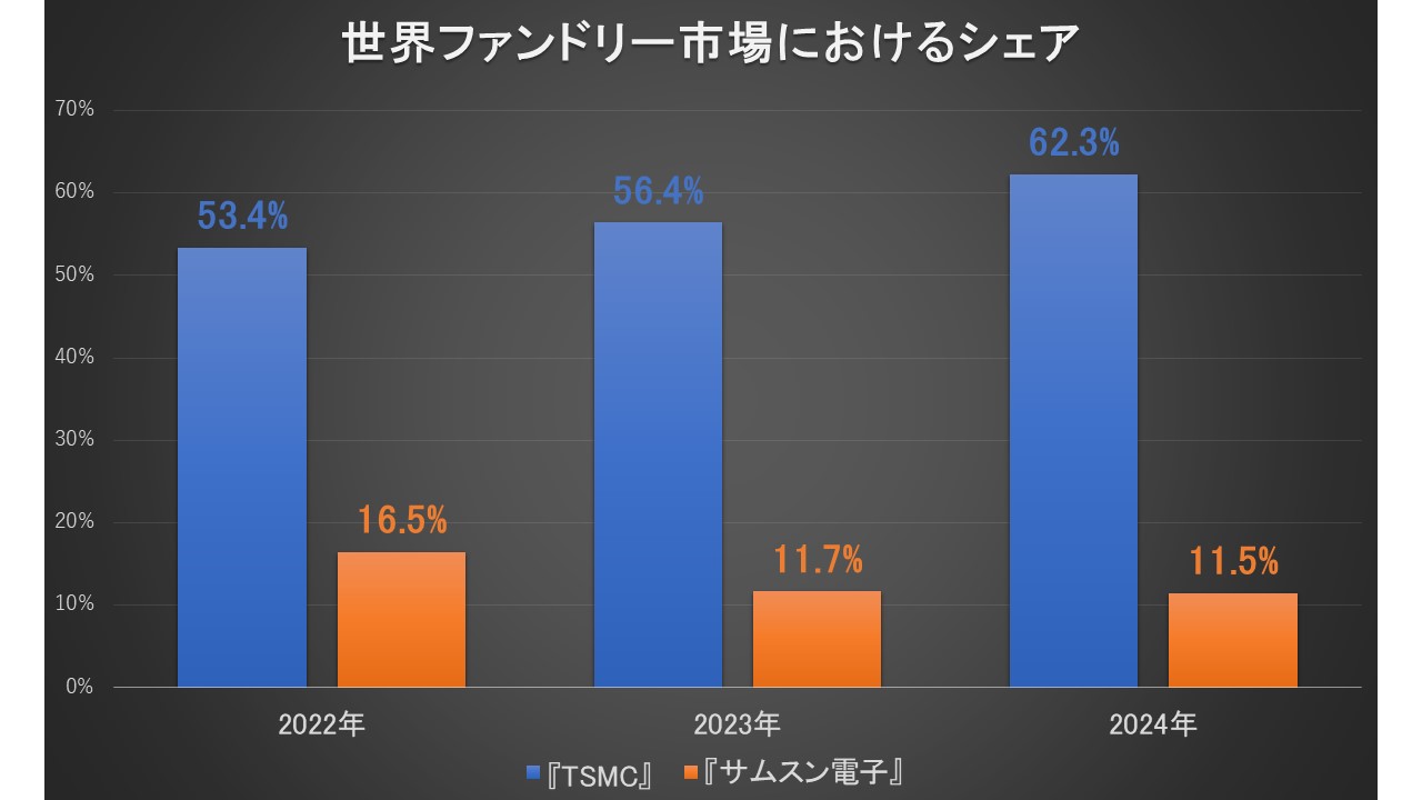 実際、ファウンドリー市場におけるシェアも『サムスン電子』は低迷しています。