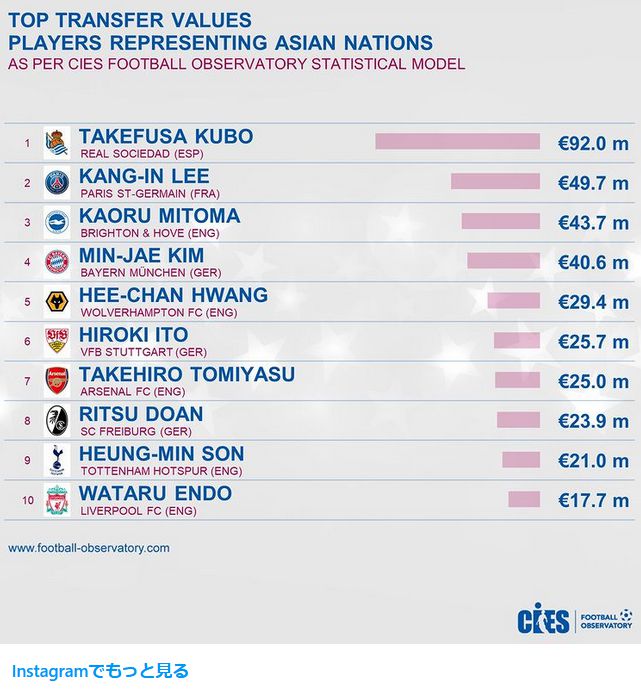 韓国は7位となっているが?wこの手のスレって定期的に立つけど、ホントに移籍してスタメンとって活躍してる話を聞いた事ないんだが?