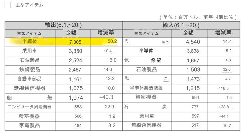 半導体に関しては、6月1日~20日までの状況が、前年同期比50%増で大喜びしてるけど、