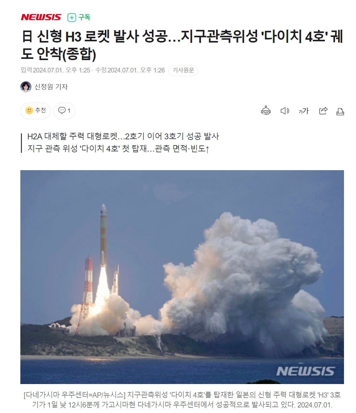 ほんと学習能力のないやつだなぁw国産大型ロケット「H3ロケット3号機」打ち上げ成功(2024年7月1日)