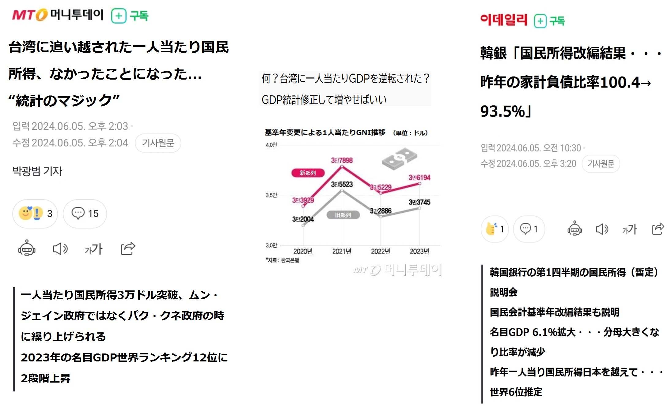 文在寅政権では台湾のGDPが韓国を追い抜いた時に統計方法を変更している。