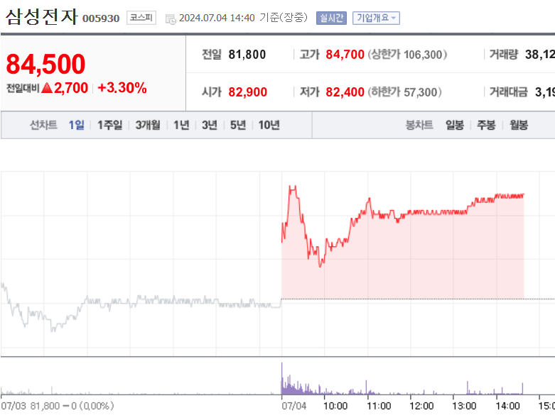 212024/07/04(Thu) 14:41:39ID:g3MzUxNjg(2/11)NG報告내일은 삼성전자 실적 발표일오늘 주가 급등!2분기 영업이익 9조원 이상 전망실적만 잘나오면 9만 5천원 가능엔비디아 HBM 통과 확정시 12만원 가능현재 시가총액 560조원>>3>>120