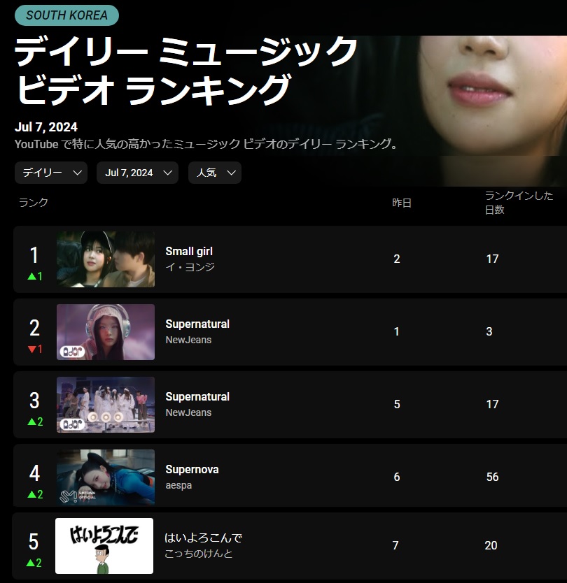 「青い珊瑚礁」 韓国のカラオケ日本曲チャート1位に=NewJeans効果