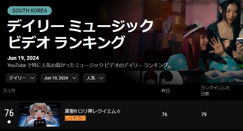 オリコンチャートでデイリー1位だと宣伝したが、週間では4位にしかなれなかった。MBN MUSIC チャンネル(歌唱動画 約5000本中、日本の曲156本:3.2% )