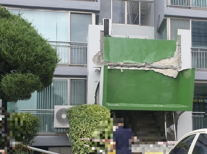 竜仁(ヨンイン)のあるマンションの共同玄関の屋根が突然崩れ落ち、警察と地方自治体が正確な原因を調べている。