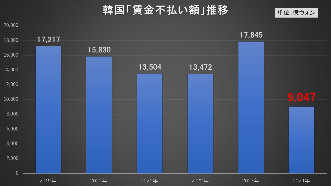 韓国では「日本の16~17倍不払いが発生する」と専門家も認めています。この賃金滞納の不払い額が2024年現在、また大きくなっているのです。