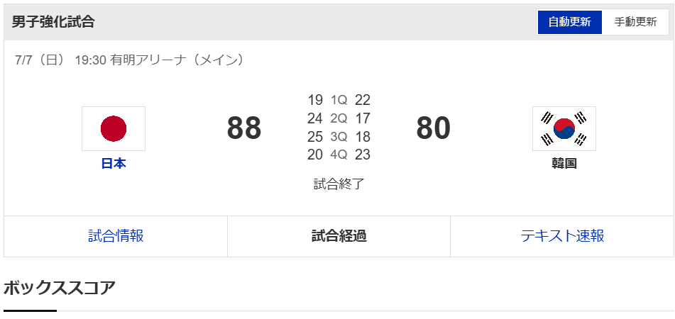 尚、チームに合流したNBAの八村塁&渡辺雄太は出場しなかった。1勝1敗で互角ニダ