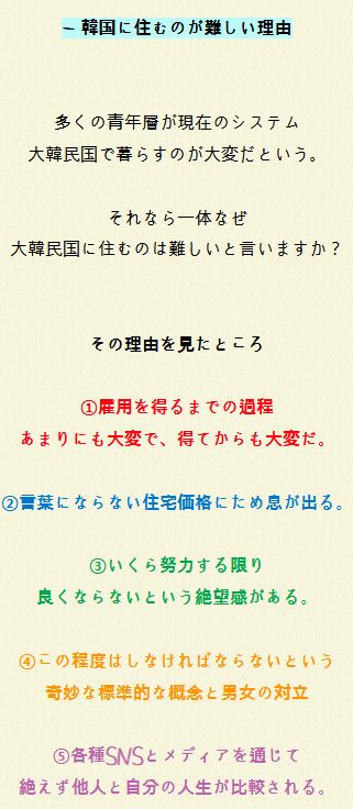 韓国社会で生きる事を諦め韓国社会から逃げ出す。