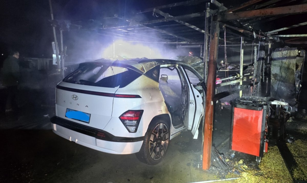 火事を起こしたのは、2023年型のコナで、ガレージで充電中でした。オーナーは前日20:00頃、バッテリー残量50%の状態で充電を開始。充電開始から約4時間後に突然、爆発音が聞こえ、火災が発生した――とのこと。