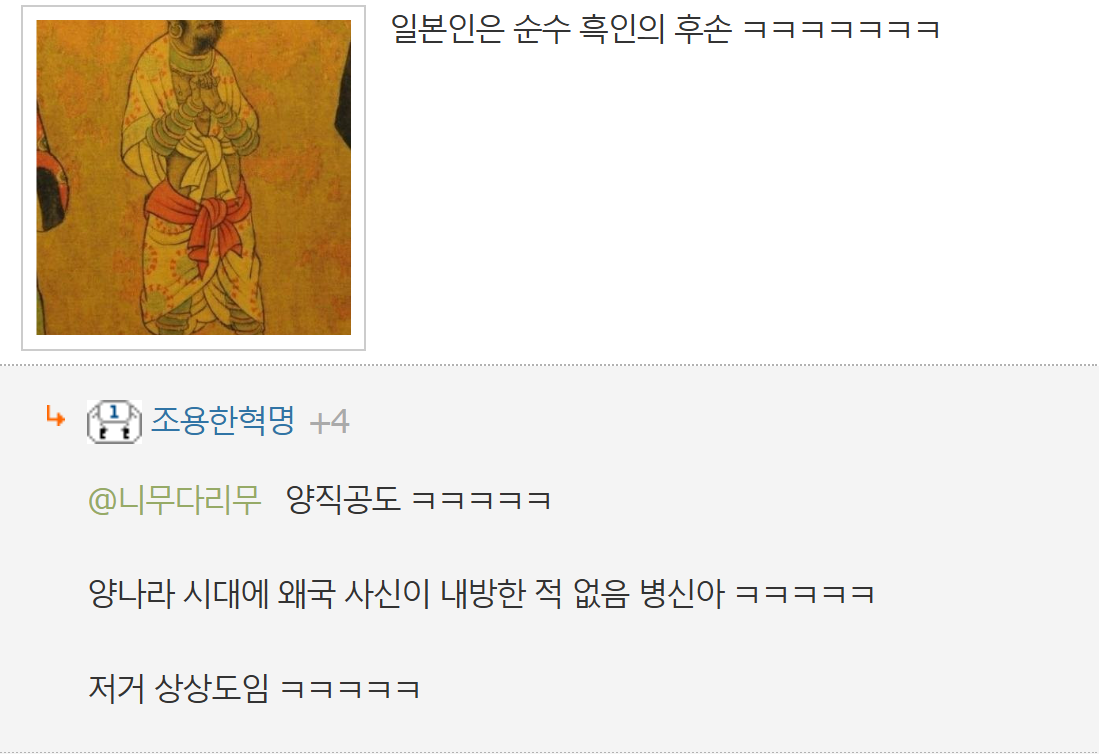 양나라 시대에 왜국 사신이 내방한 적 없음 병신아 ㅋㅋㅋㅋㅋ