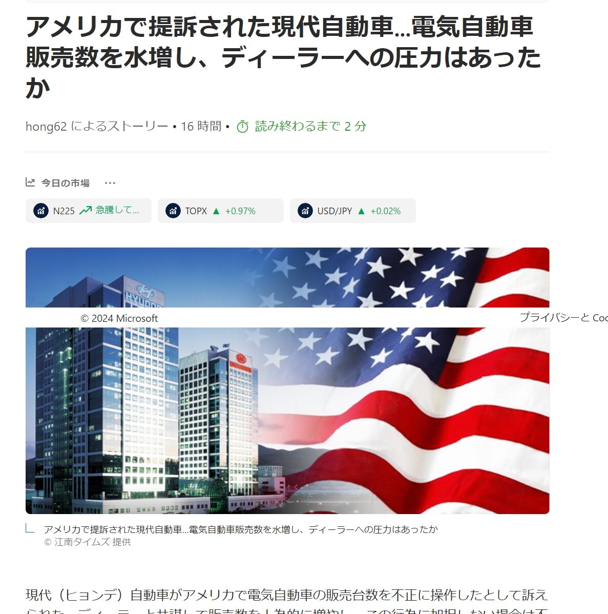 https://japan.hani.co.kr/arti/economy/50522.「アメリカで提訴された現代自動車…電気自動車販売数を水増し、ディーラーへの圧力はあったか」