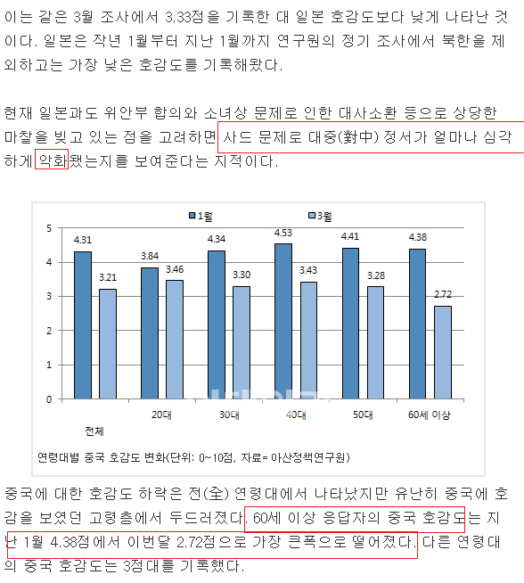 일본이 좋아진게 아니라 상대적으로 중국 호감도 가파르게 내려간거겠지