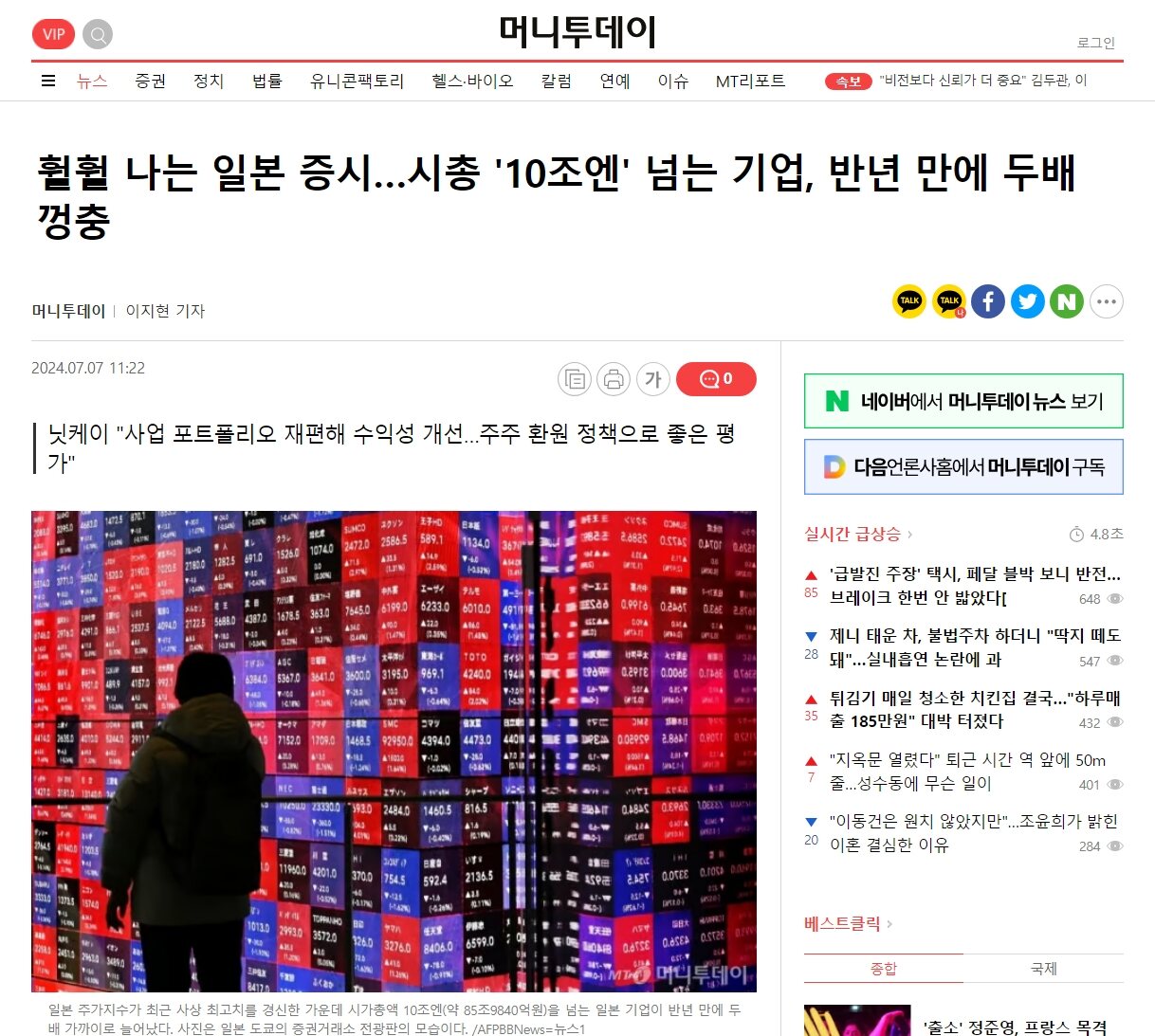 일본 엔 약세가 멈출 기미가 없다. 올해 초 1달러=140엔대였던 엔 시세는 지금 1달러=161엔대를 오르내리고 있다. 여러 원인들이 있지만, 조 바이든 미국 대통령이 지난 달 27일 열린 도널드 트럼프 전 대통령과의 토론회에서 ‘참패’한 것도 그 중의 하나라고 <아사히신문>이 7일 지적했다.