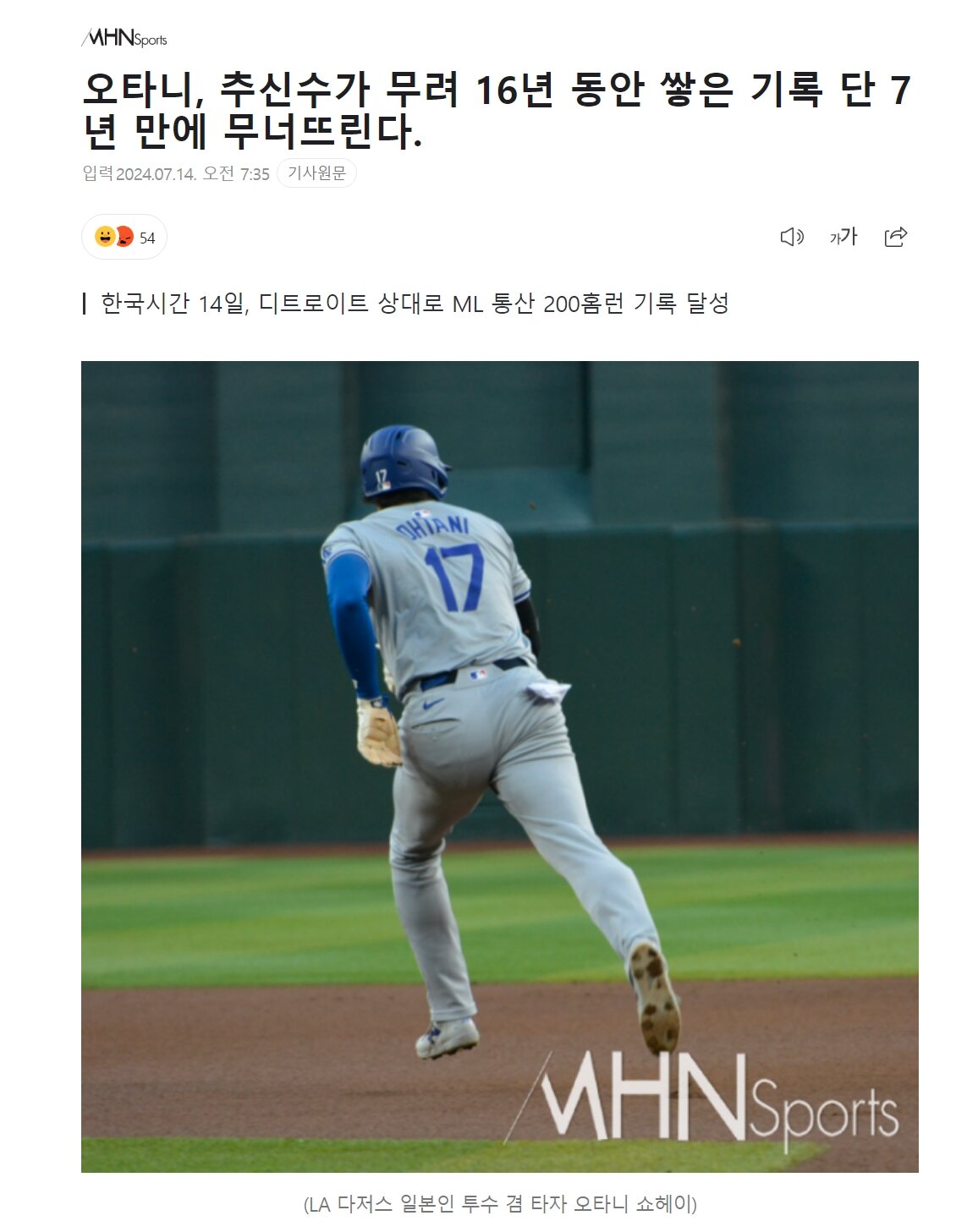 2018年に元所属チームのLAエンジェルスと契約し、メジャーリーグに進出した大谷は、大リーグ初年度から22本塁打を放ち、巨砲本能を誇った。 以後、毎シーズン「18-7-46-34-44本」の本塁打を放った。 そして同日、今季29号本塁打を踏み台に、自分の大リーグ通算200本塁打の高地に上がった。
