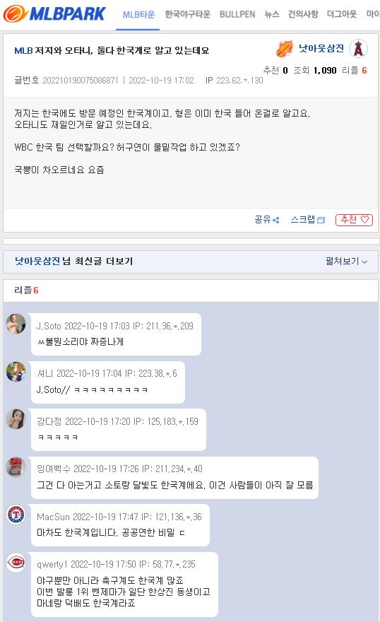 オ タニって言ってる朝鮮人もいたから