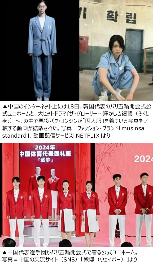 「囚人服みたい」 韓国のパリ五輪公式ユニホームをバカにする中国ネット民