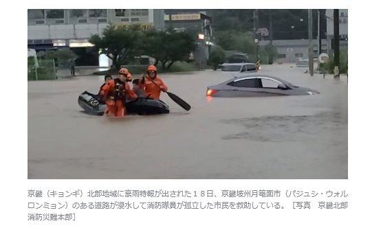 ソウルだけが韓国で、地方は切り捨て宣言か?韓国で季節外れの大雨、4人死亡 1300人が避難