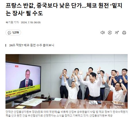 原発業界ではチェコ原発受注という尹錫悦政府の短期功績を積むために中長期「K原発」輸出に障害になるような条項を受け入れる過度な譲歩をしたという評価が出ている。
