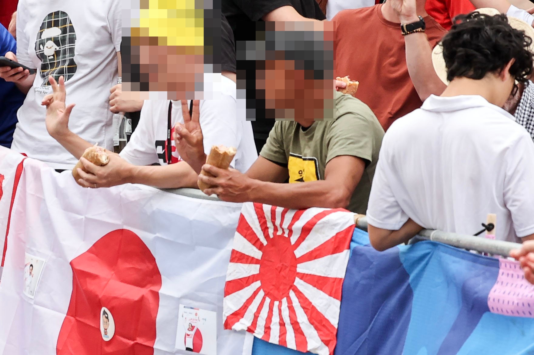 2024年パリ五輪の男子自転車競技ロードレースが3日(現地時間)、273キロ区間で今大会最大の勝負どころであるモンマルトルの丘には、早い時間から自転車ロードレースのファンが集結し、足の踏み場がなかった。早くもモンマルトルの丘の入り口に位置したある日本人自転車ロードレースのファンは、大きな日の丸の横に旭日旗を取り付け、自転車ロードレース選手たちが通り過ぎるのを待っていた。日の丸には日本人選手の荒城幸也(39)の顔写真が貼られていた。