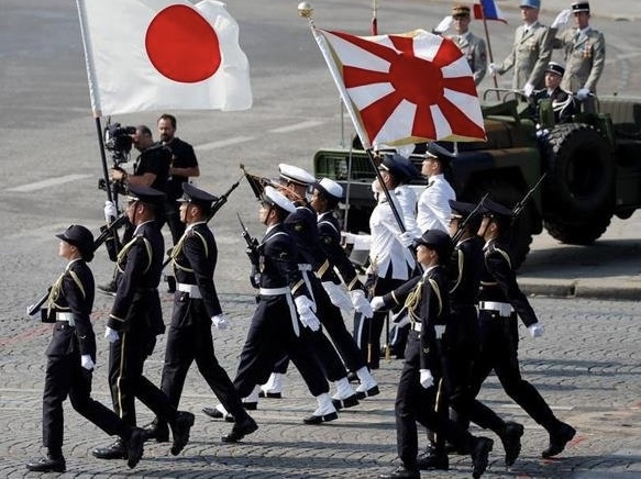日本は日清戦争、日露戦争を行い、日本国旗の日の丸の太陽の周りに赤く日差しが広がる模様を描き入れ、軍旗として使用した。浮上する日本の勢いを盛り込んだとして「旭日旗」と呼ばれた。その後、1945年の太平洋戦争が終わるまで、旭日旗は軍国主義日本の象徴だった。