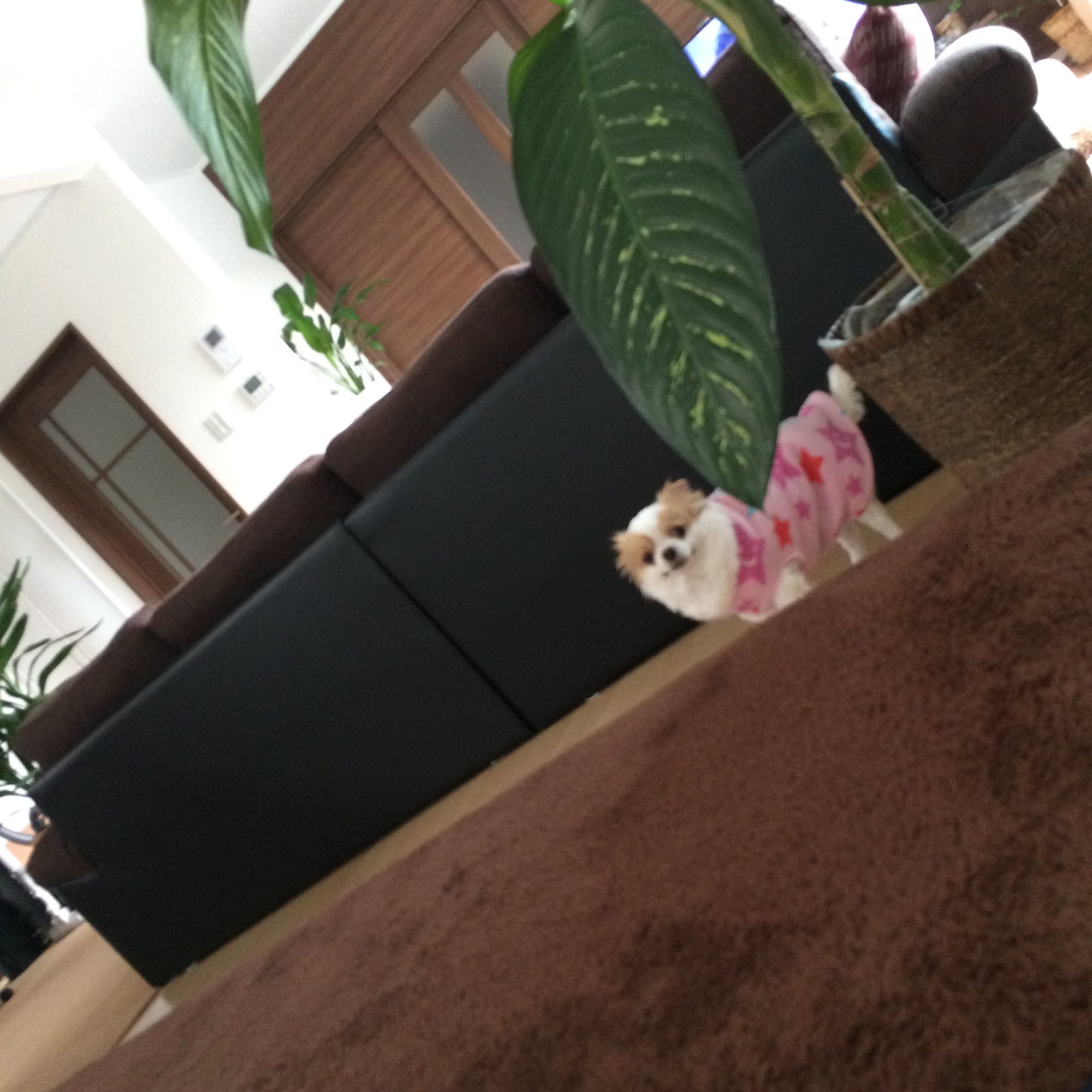 広めのお家、大きな観葉植物?と良さげなソファー