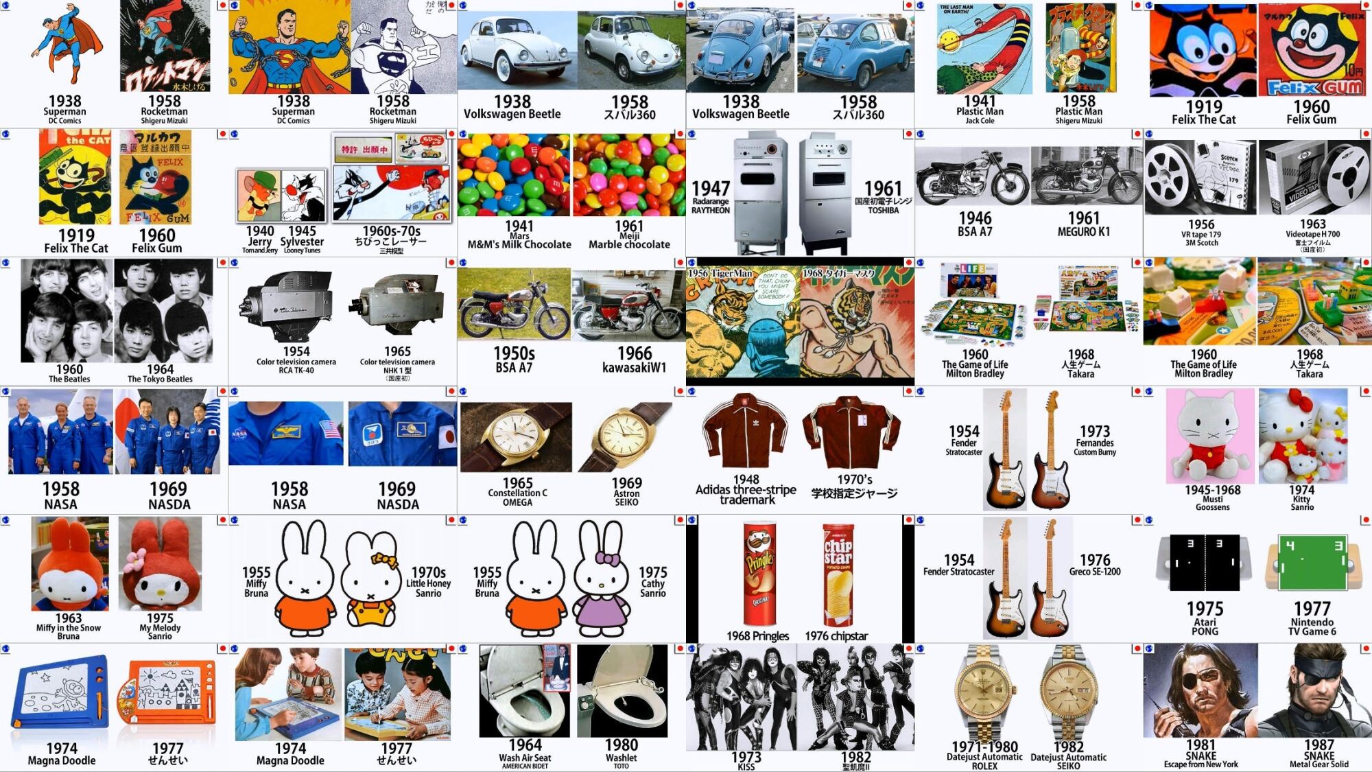 あのさ、仮に「日本もパクリが多いnida!」という告発のつもりなら、最低でも「日本が韓国からパクったもの」の一覧表にしてくれ。1つの国vs1つの国。この一覧は「日本が世界各国からパクった(?)もの」だろ。言いがかりまで必死で詰め込んでこれだけしか見つけ出せなかったなら、かなり少ない。