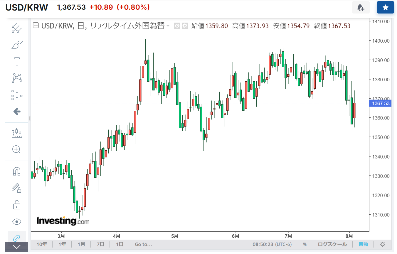 半導体技術の囲い込みも日米でしてるし。ウォン、対円でも妙に下がってるね