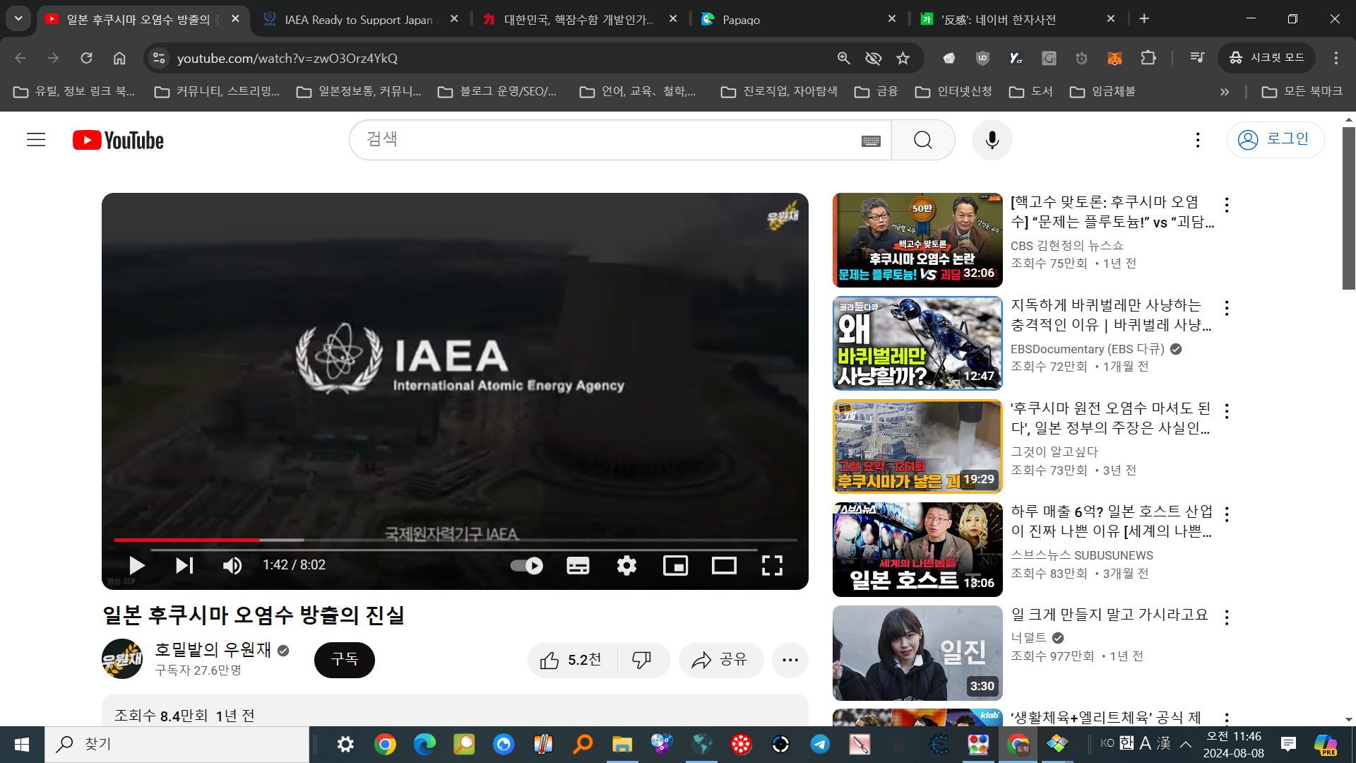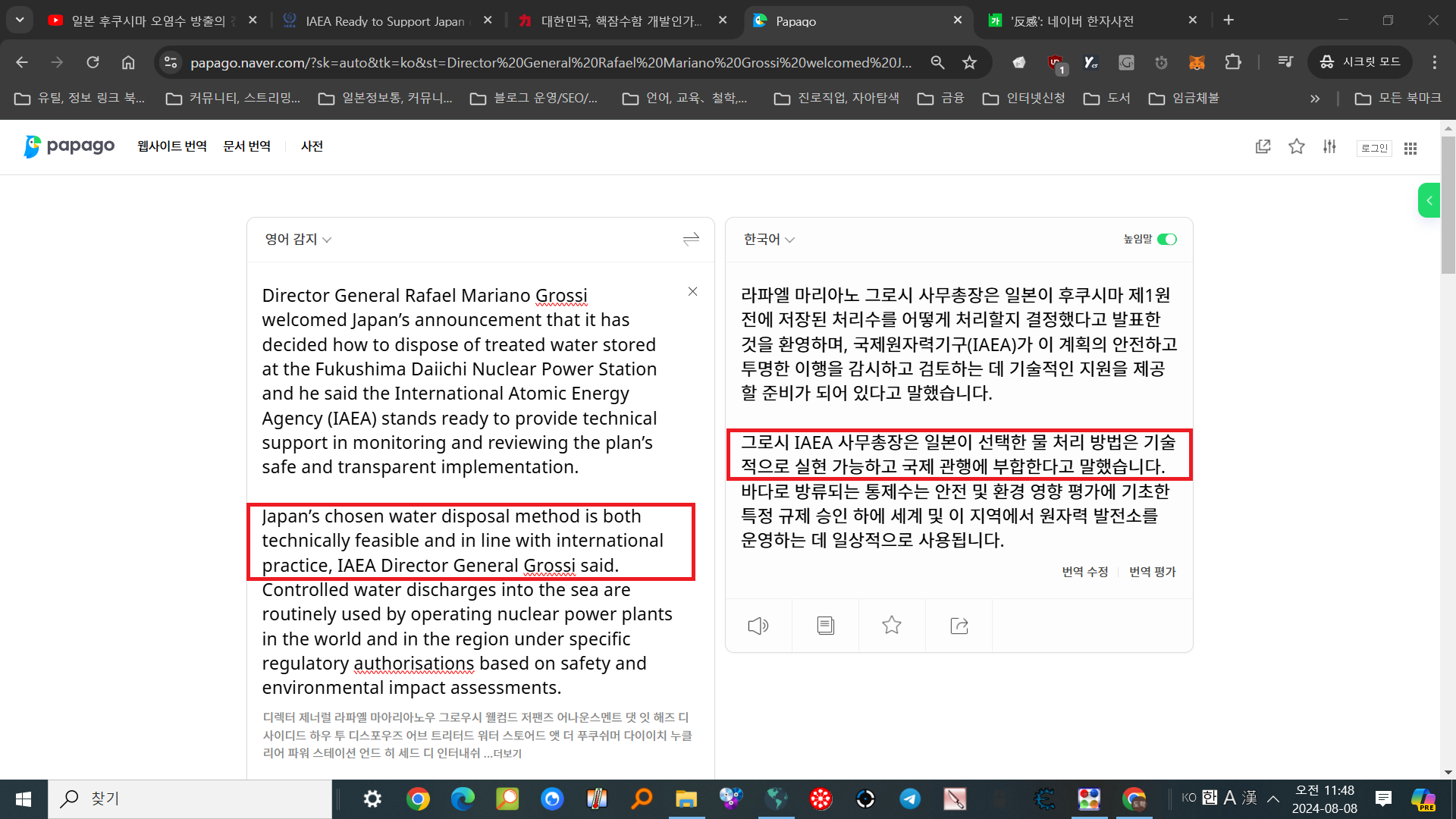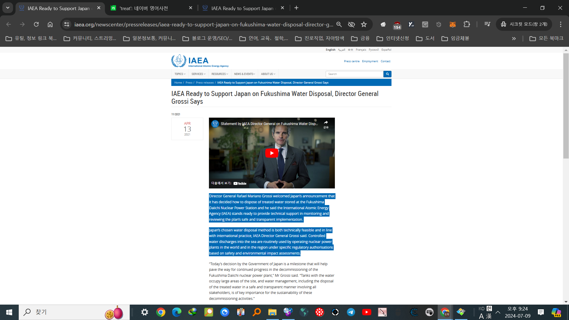 요약:"일본은 방사능폐기물처리법으로써, 방류를 결정했다. 그 방법은 실행가능하며 국제 관행에 속한다."