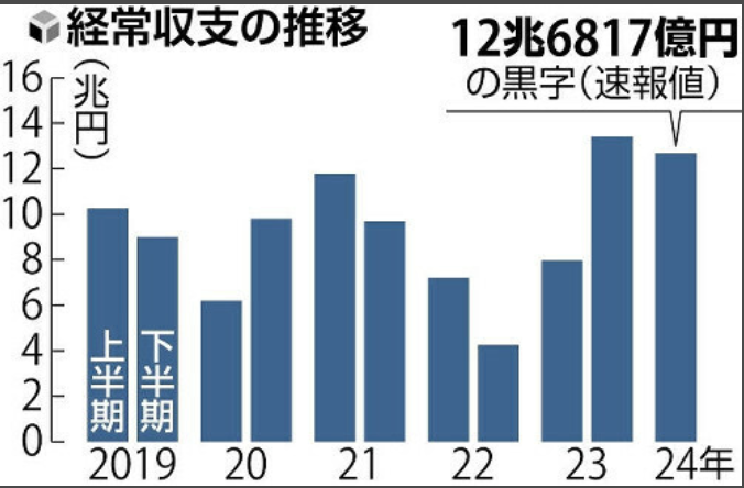 >日本、今年上半期の経常黒字12兆6,817億円…前年同期比59.2%増