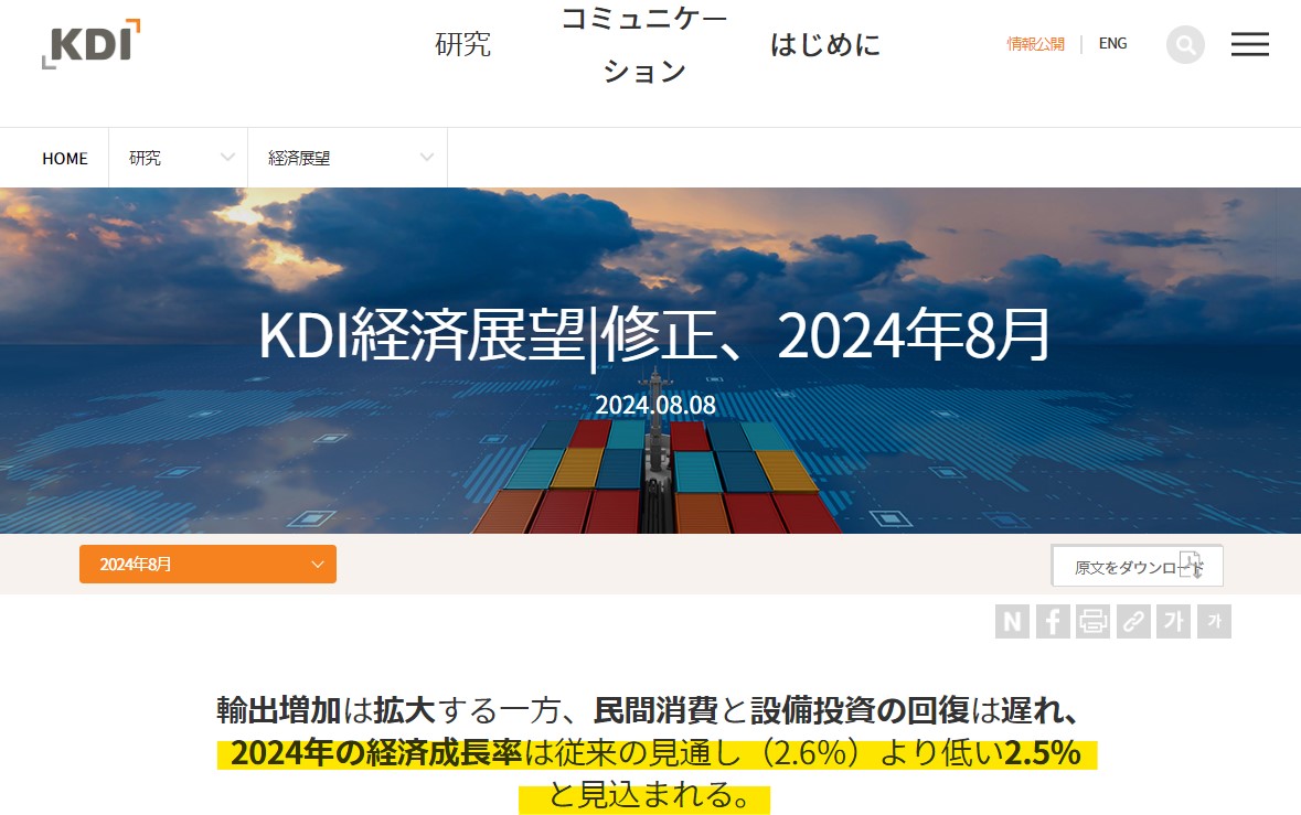 韓国「高金利で消費・内需不振」GDP成長率を下方修正。