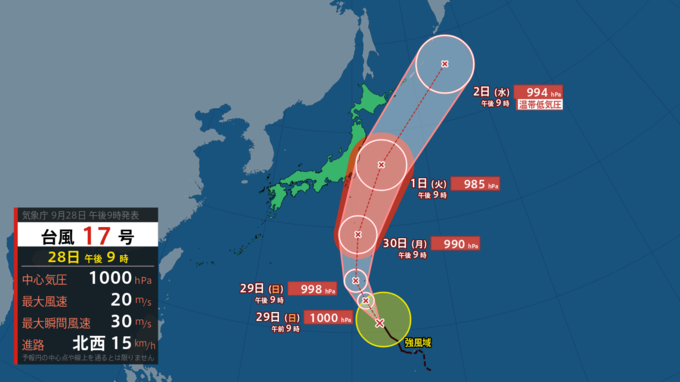 일본 국토교통성과 기상청은 10일 오후 공동기자회견을 열고 5호 태풍 마리아가 일본 혼슈 동북부 지역에 접근해 상륙할 수 있다고 밝혔다. 일본 기상청 관계자는 “도호쿠에서는 24시간 동안 내리는 강수량이 300mm가 될 것으로 예상한다. 총 강수량이 평년 8월 한 달 치를 웃돌 수 있다”고 했다. 그러면서 도호쿠 지방을 중심으로 북일본에서 동일본에 이르기까지 기록적인 폭우나 산사태, 하천 범람, 홍수 등이 발생할 가능성이 있다고 예상했다.