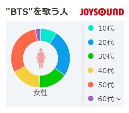 BTS のファンは、50代が10代と20代を合わせたくらい居る上に、若者よりずっと金持ってるわけだから、BTS は50代のファンを大切にしないとやっていけない。