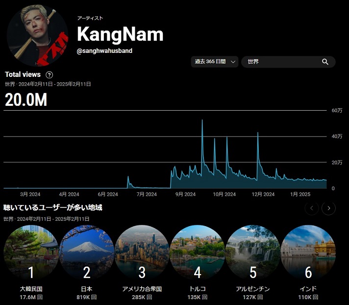 そんなカンナムさん、JPOPをカバーした曲を youtube に挙げて、これが韓国の Music Charts にランクイン。