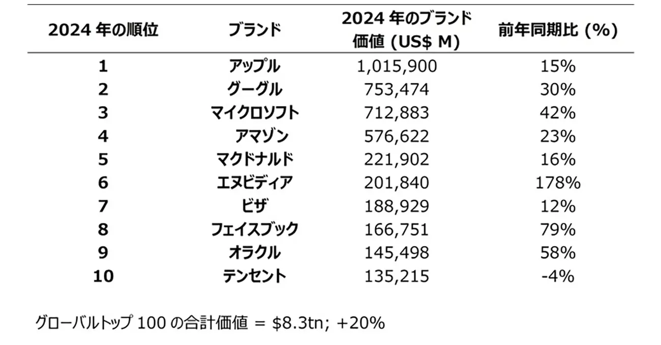 カンターは、2024年6月12日、「Kantar BrandZ Most Valuable Global Brands Report 2024(Kantar BrandZ 最も価値あるグローバルブランドTOP100)」を発表した。