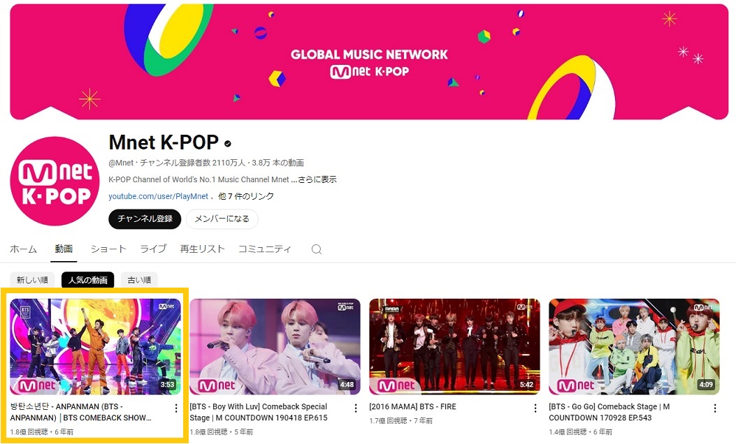 【Mnet K-POP】という KPOP最大の総合チャンネルの3万8000本以上の動画において再生数1位。