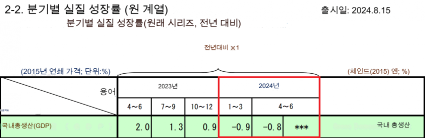 전년 동기 대비 -0.9%의 역성장을 보였다