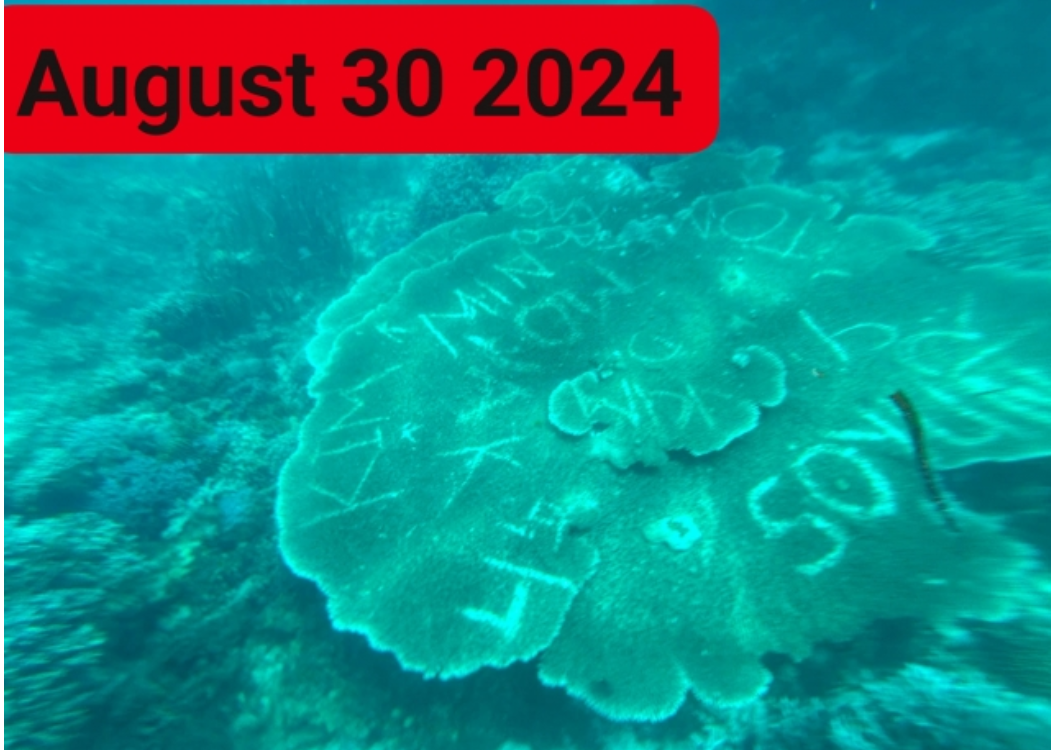 希少サンゴに落書き「キム」「ミン」韓国観光客か? シュノーケル禁止の