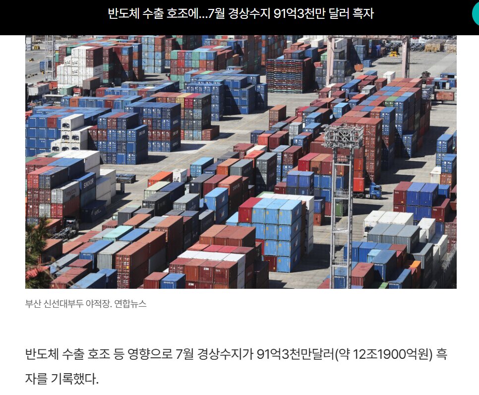 韓国、91億3000万ドル(約12兆1900億ウォン)と黒字を記録した。
