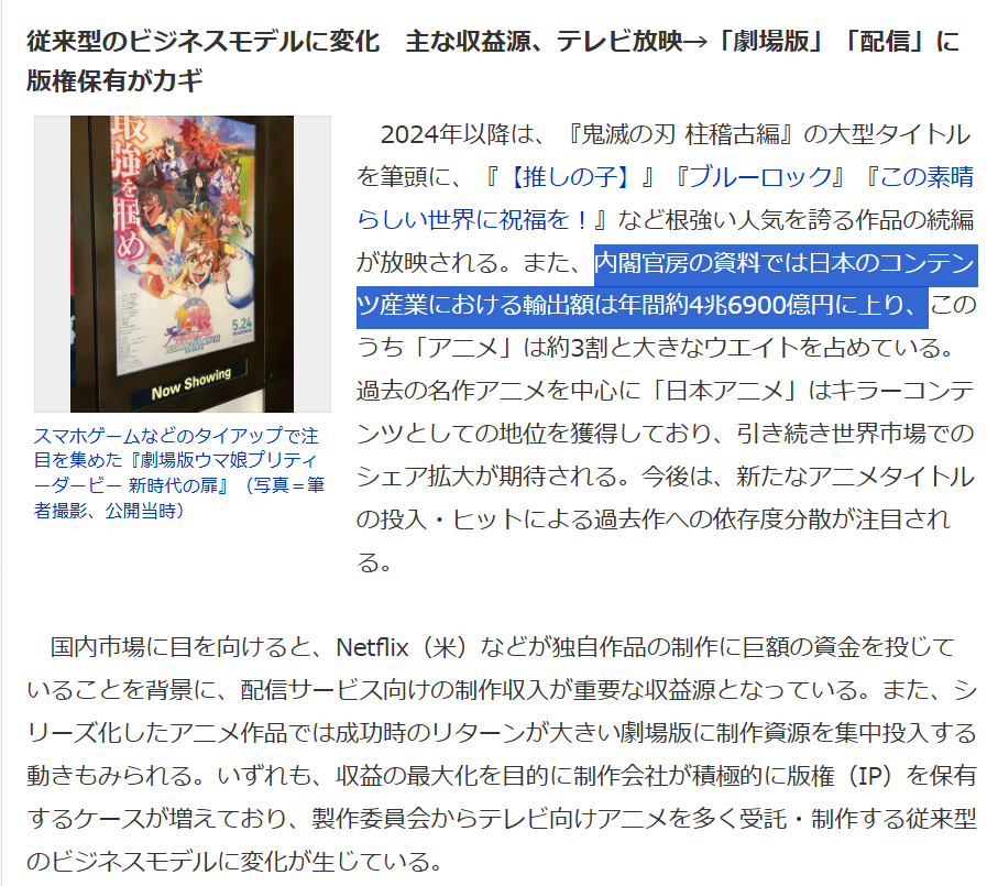 日本の文化コンテンツ輸出 330億ドル(4兆6900億円)