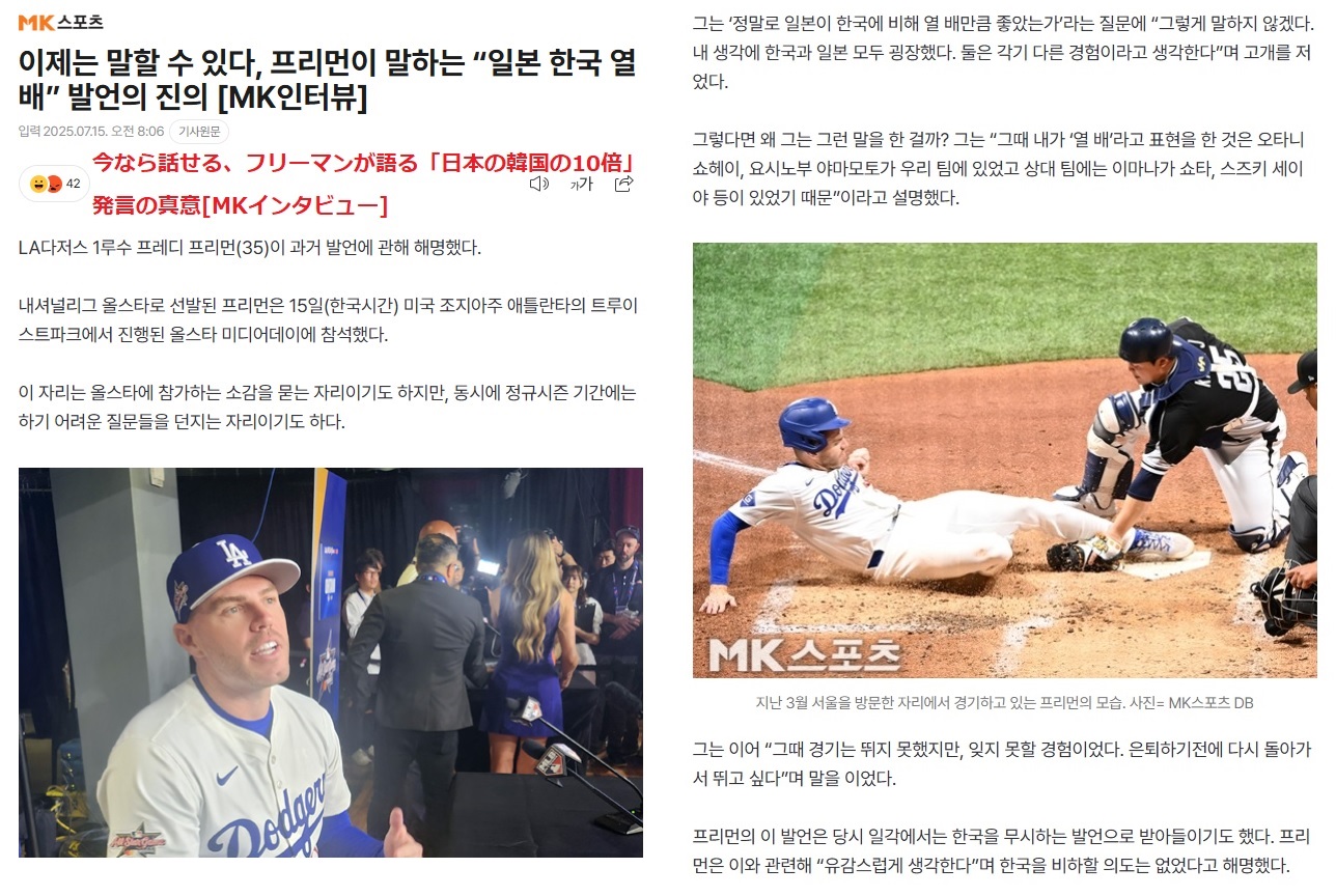 今回、オールスター戦を取材した韓国メディアの記者が、フリーマンにこの発言の真意について質問したという。