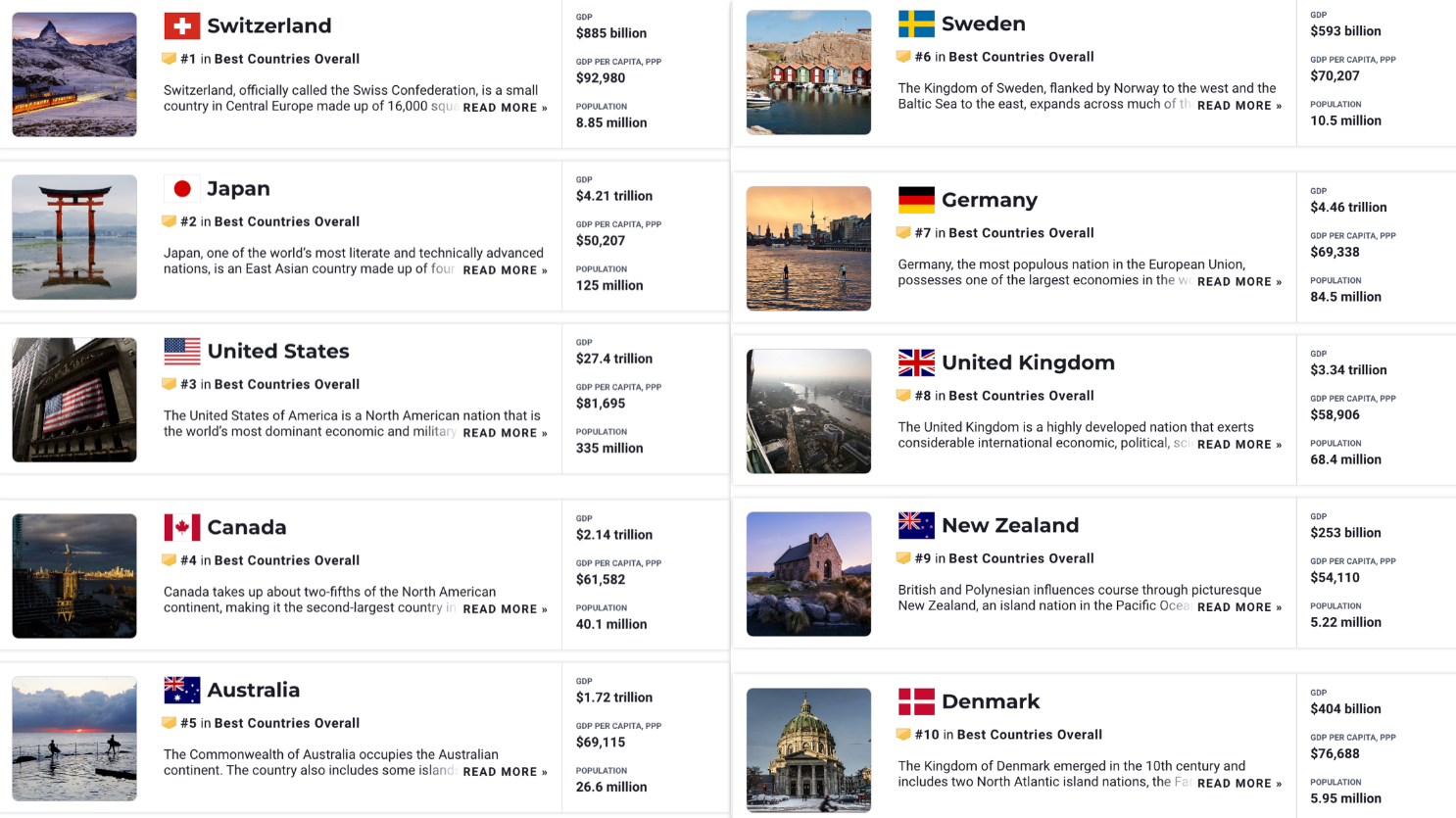 毎年恒例の「世界最高の国ランキング」を発表しました。
