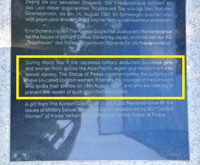 これが、君らの国の市民団体が世界各地に建立している少女像の碑文に書かれている内容だよ