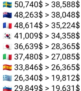 台湾に追い抜かれた朝鮮人。OECD国家別名目税引き前所得及び税引き後所得(ドル)