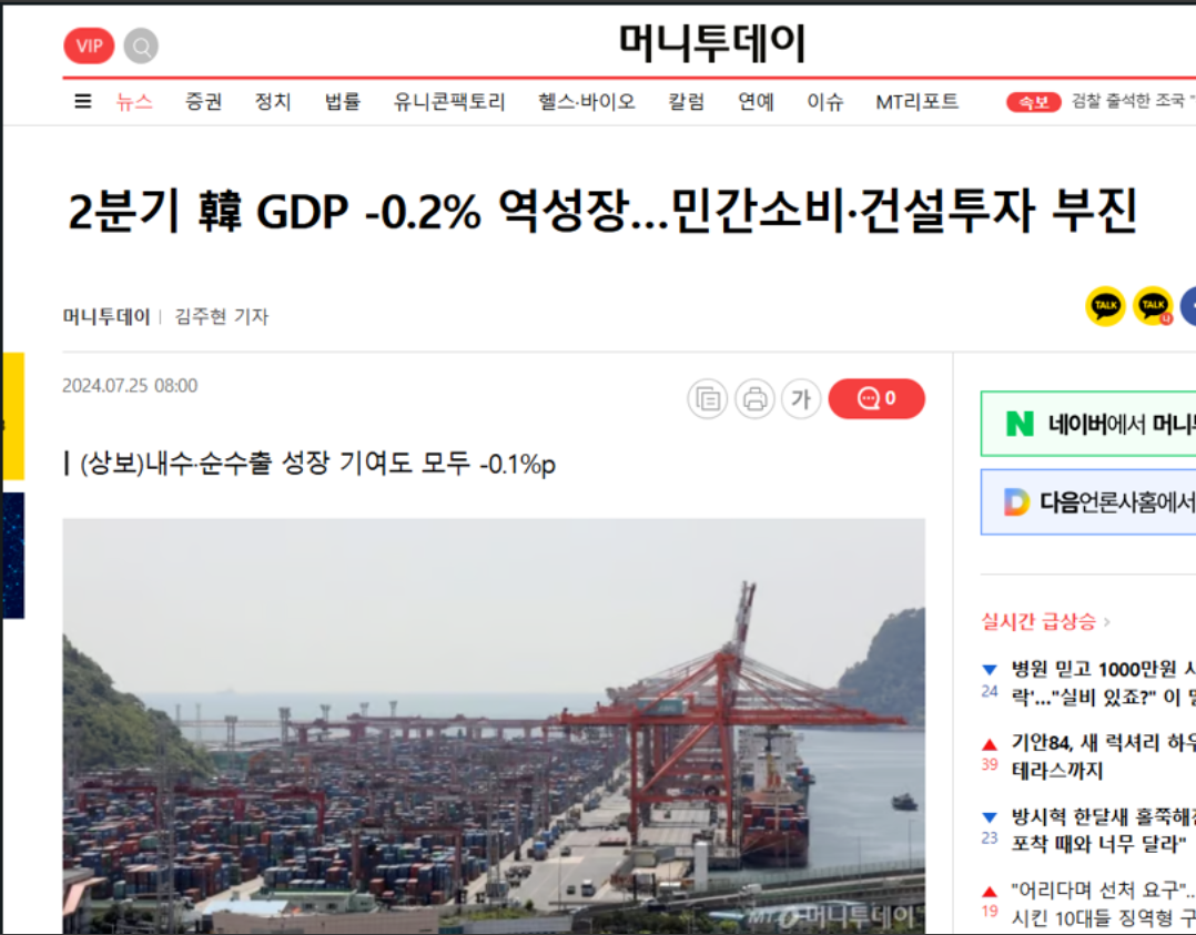 우리나라 경제가 3분기 고작 0.1% 성장하는데 그쳤다. 내수가 일부 회복했지만, 수출이 흔들리면서 성장이 주저앉았다.