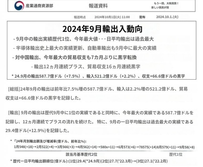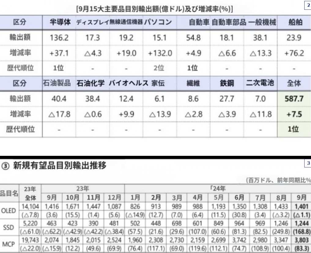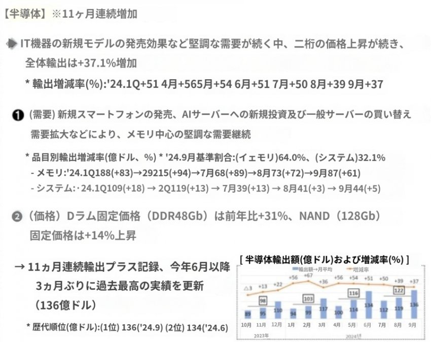 9月の輸出7.5%↑「12カ月連続+」···半導体136億ドル「史上最大」